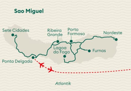 Insgesamt neun Inseln vulkanischen Ursprungs schliesst der Azoren-Archipel im Atlantik ein. Sao Miguel, die grösste Azoren-Insel zieht uns mit ihren mystischen Nebelwäldern, den saftig grünen Teeplantagen, den geheimnisvollen Kraterseen und den atemberaubenden Vulkanlandschaften mit heissen Quellen und Fumarolen sowie der historischen Inselhauptstadt Ponta Delgada in den Bann. ...